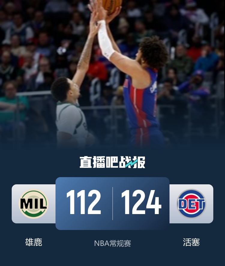 12月7日讯 NBA常规赛继续进行,活塞坐镇主场迎战雄鹿队,此前活塞18胜5负稳居东部第一,雄鹿则是10胜14负排名东部第十,本场字母哥继续缺阵。
